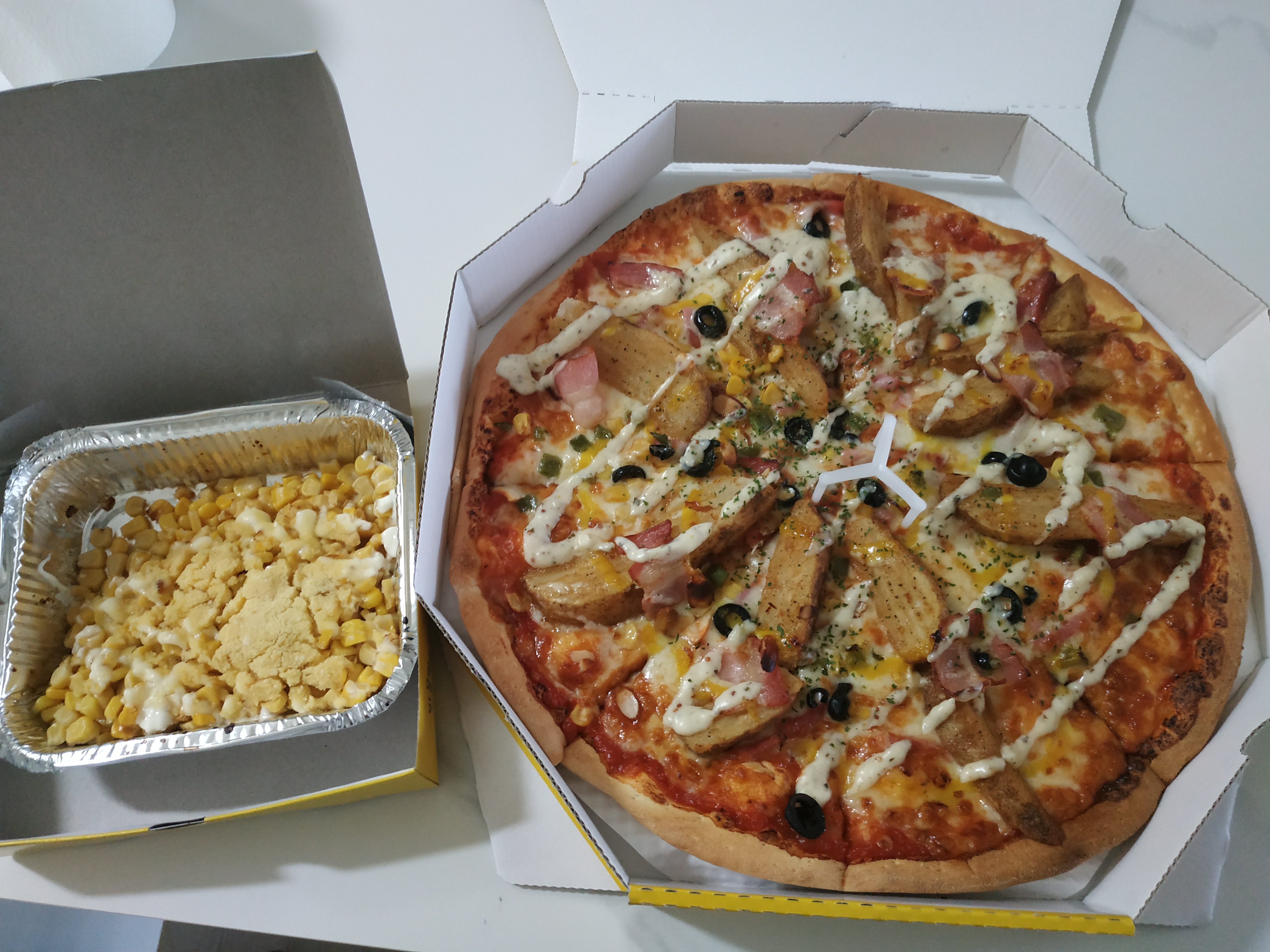 오늘은 반올림피자샵에서 포테이토 피자를 시켜먹었는데요 피자 자체도 맘에 들었고 리뷰이벤트로 받은 마약옥수수도