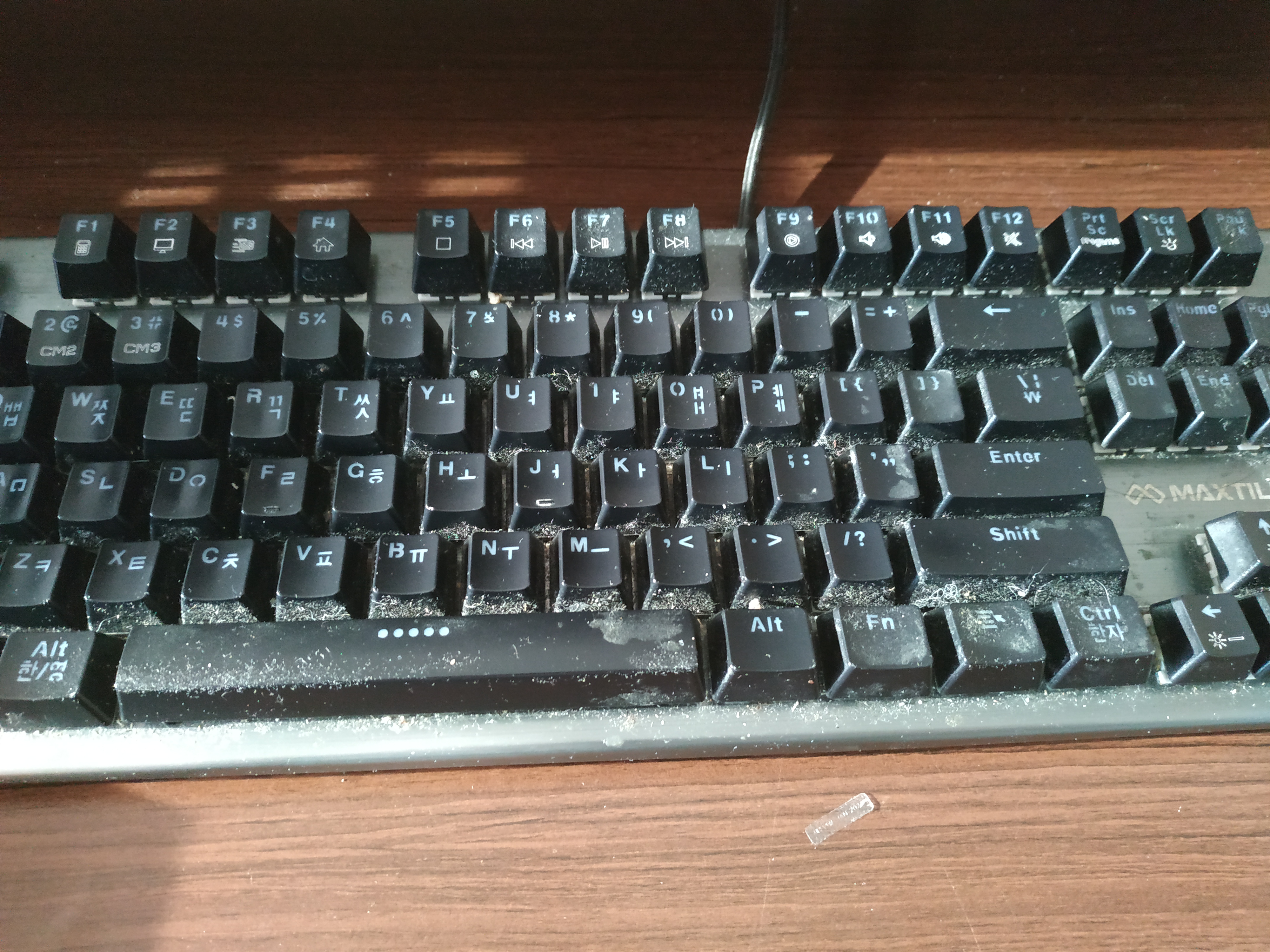 나중에 키보드 청소하는 사람들 보니까 키 다 빼서 물에 담가서 박박 닦더라...