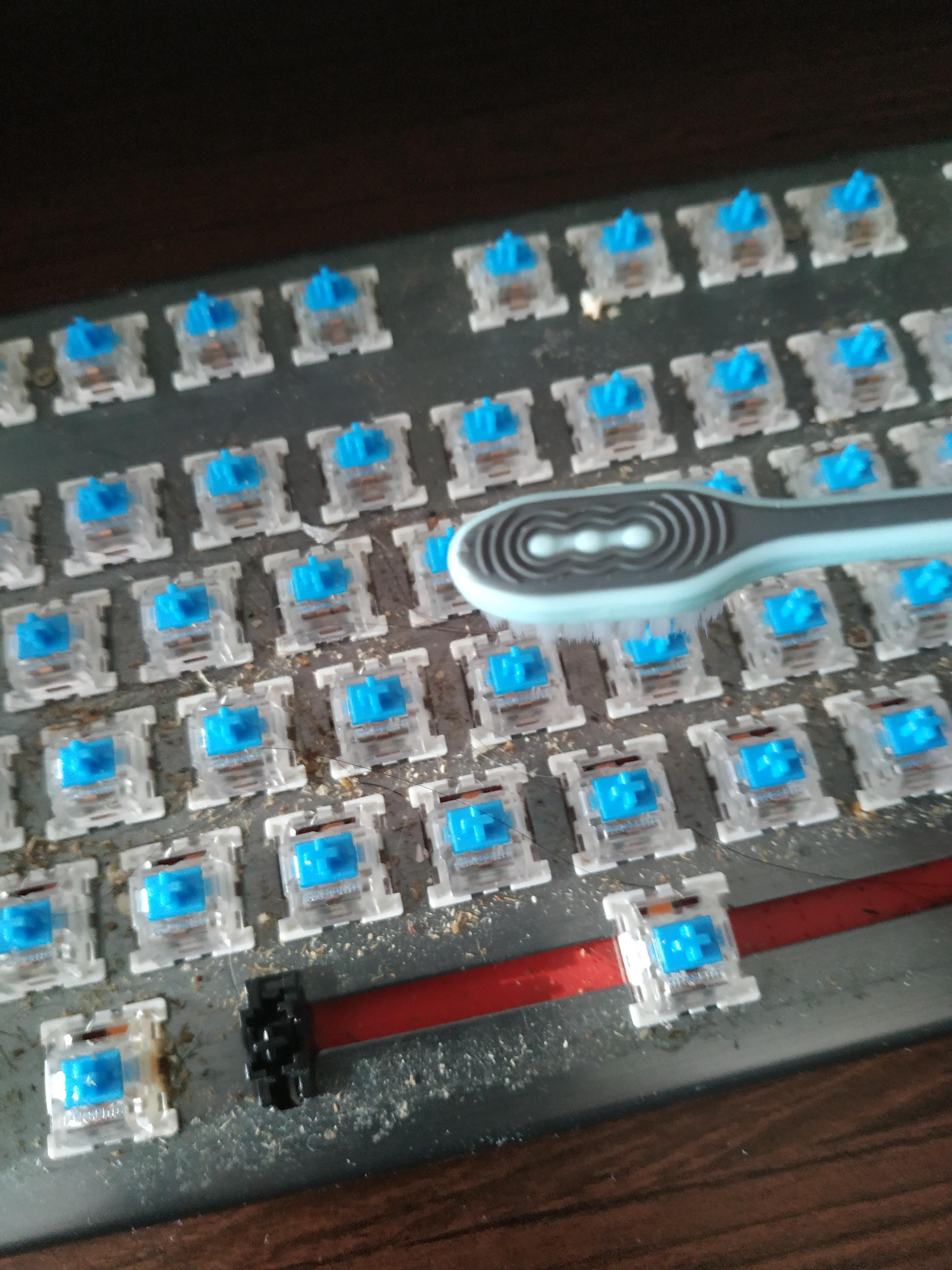 칫솔로 키보드 사이사이를 닦아준다 압축공기가 있으면 좋은데 나는 없어서 칫솔로 했다