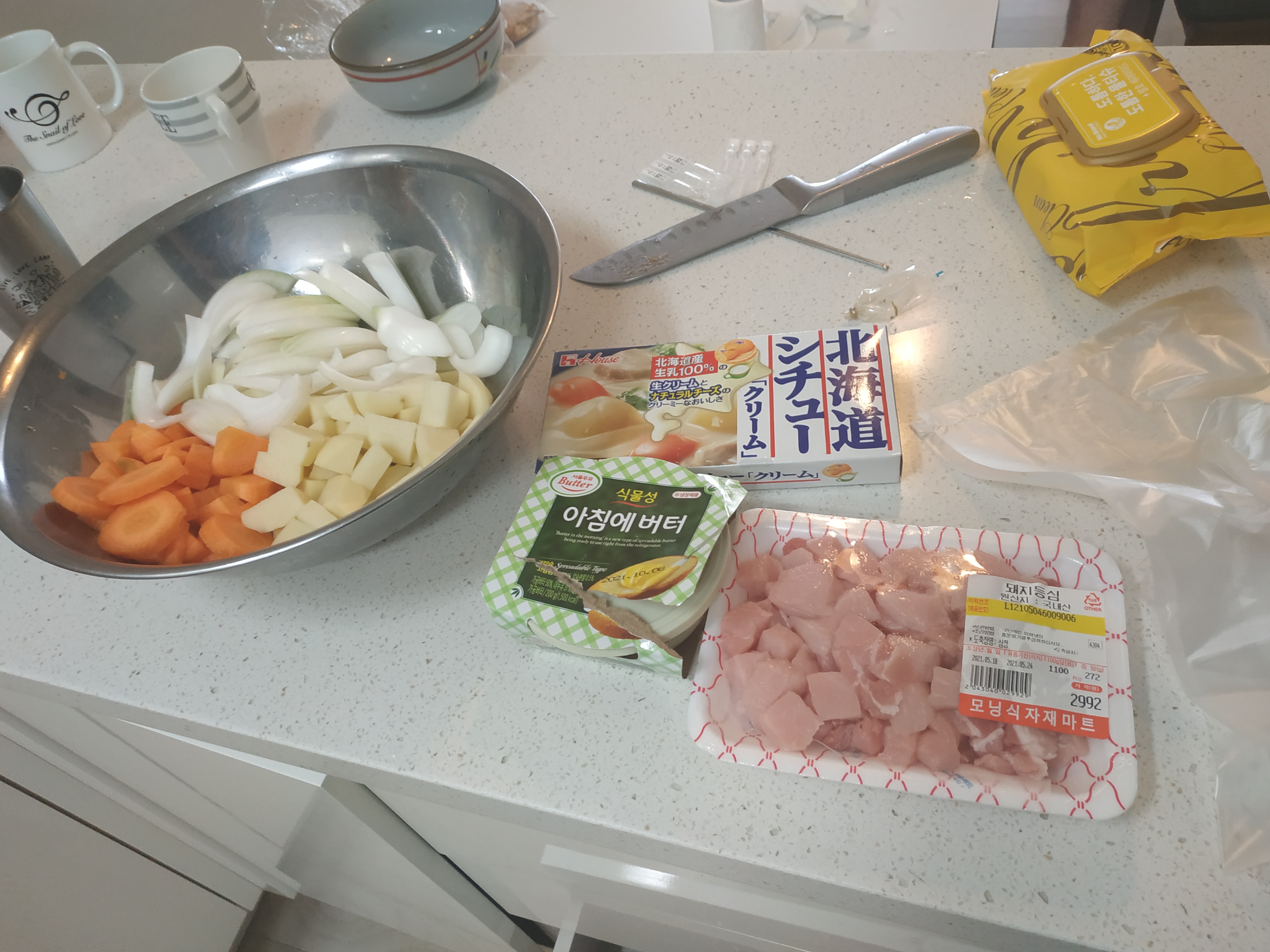 오늘은 일본산 홋카이도 고형 크림스튜 시제품으로 크림스튜를 만들어보려고 하는데요