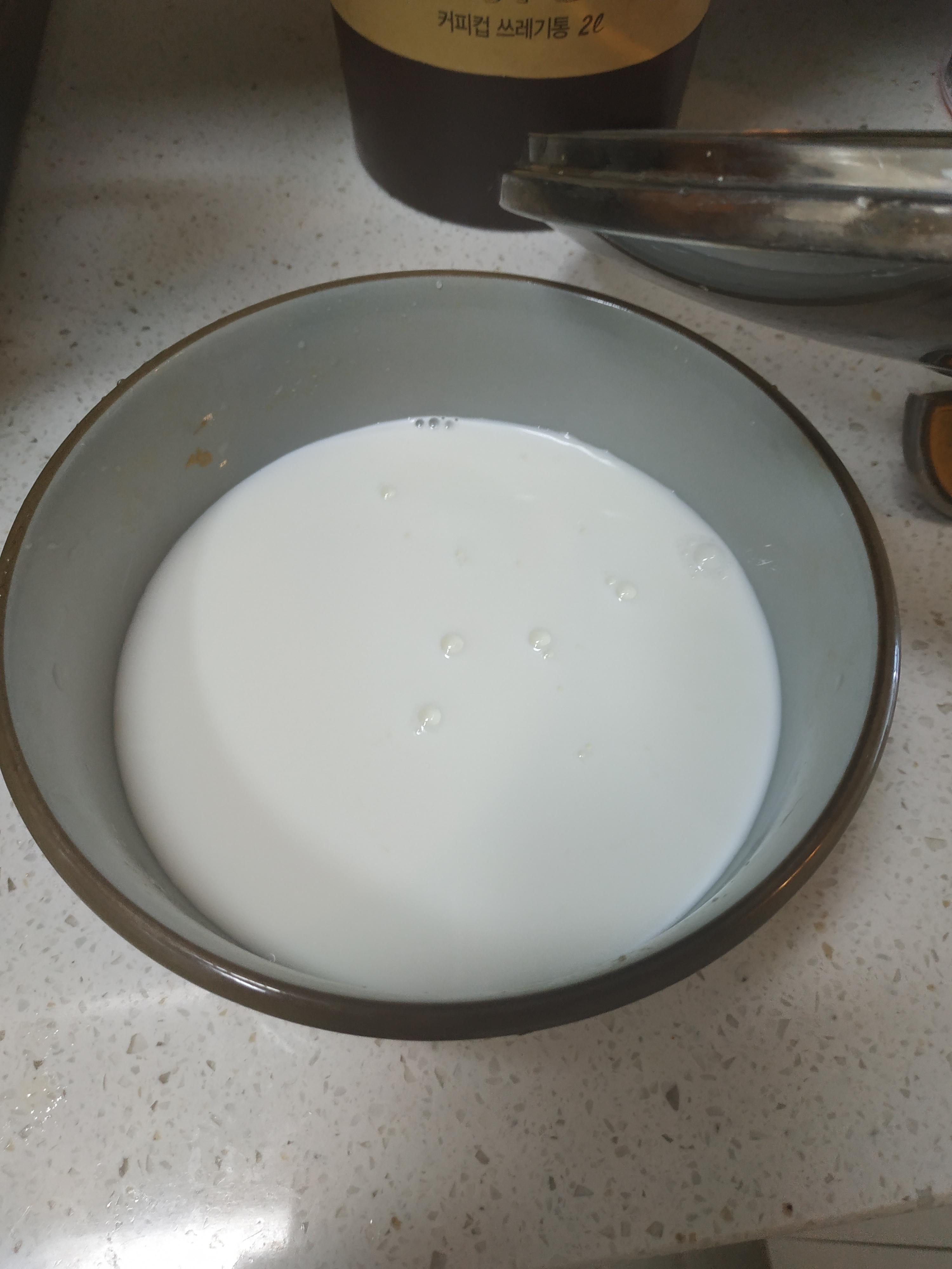 물을 다 버려주고 그만큼 우유를 따라줍니다