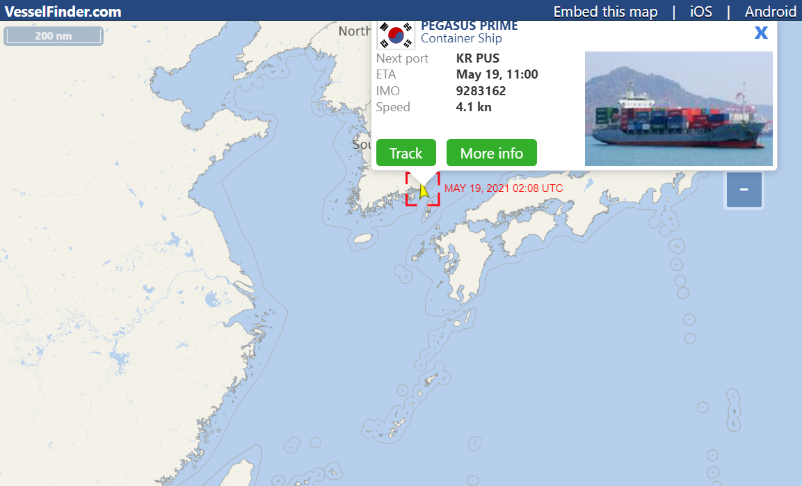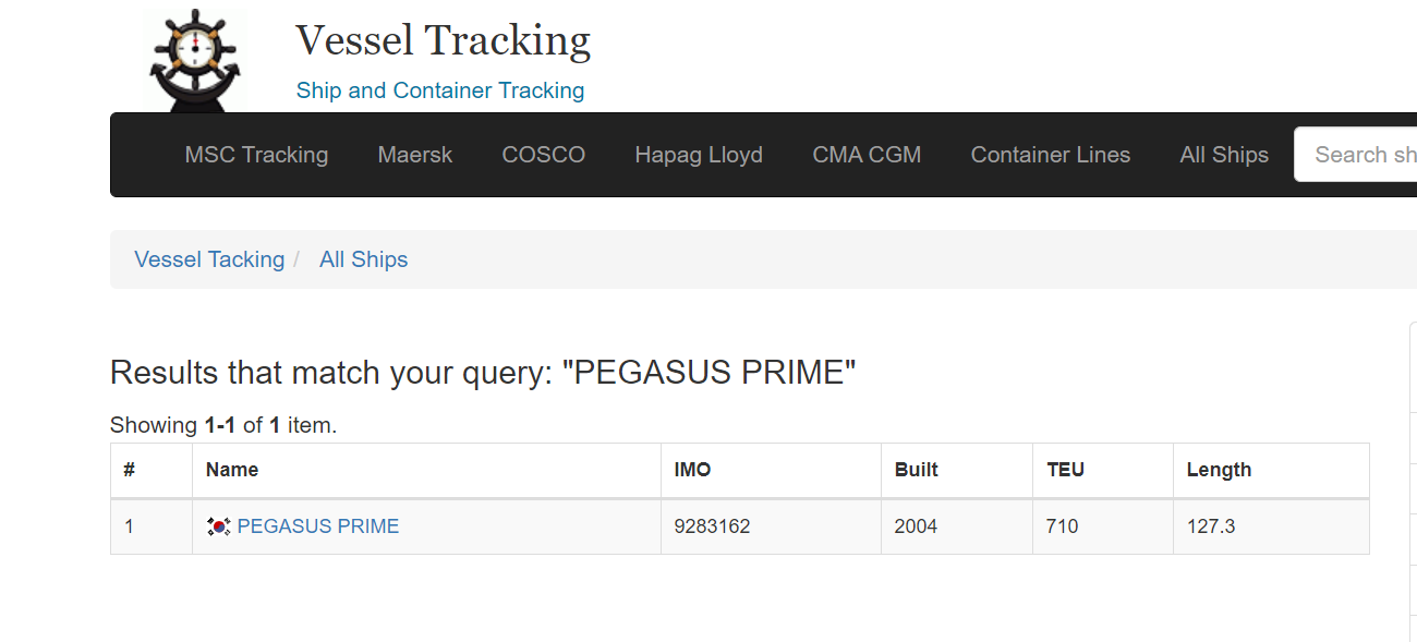 제 택배를 실은 배는 PEGASUS PRIME이지요 검색창에 입력해줍니다