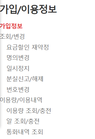왼쪽 탭에 가입정보를 누릅니다 그러면 정확한 요금제 확인을 할 수 있습니다