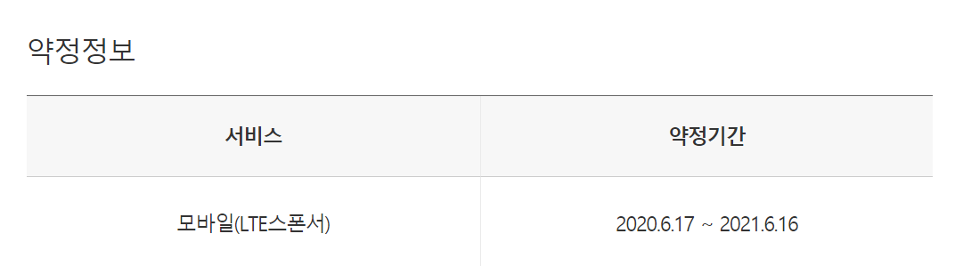약정 정보도 볼 수 있구요 약정 기간도 확인할 수 있습니다 저는 6월 16일까지라고 되어있네요