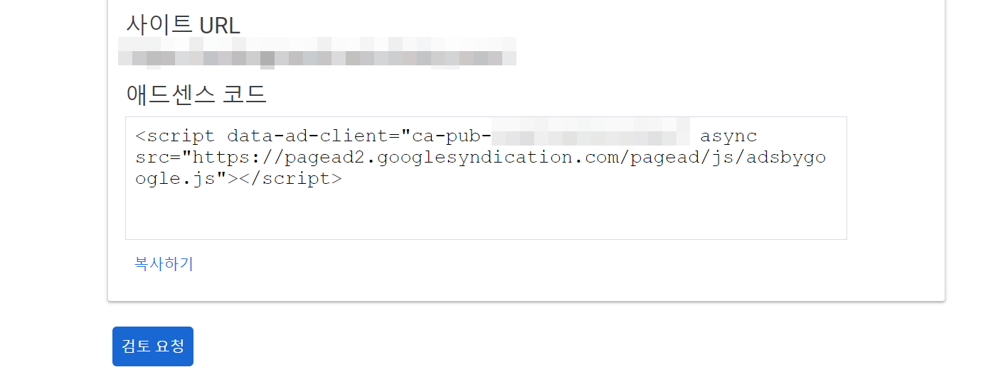 이러면 애드센스와 사이트가 연결이 되고 광고 코드를 복사 붙여넣기 하라고 나오는데요