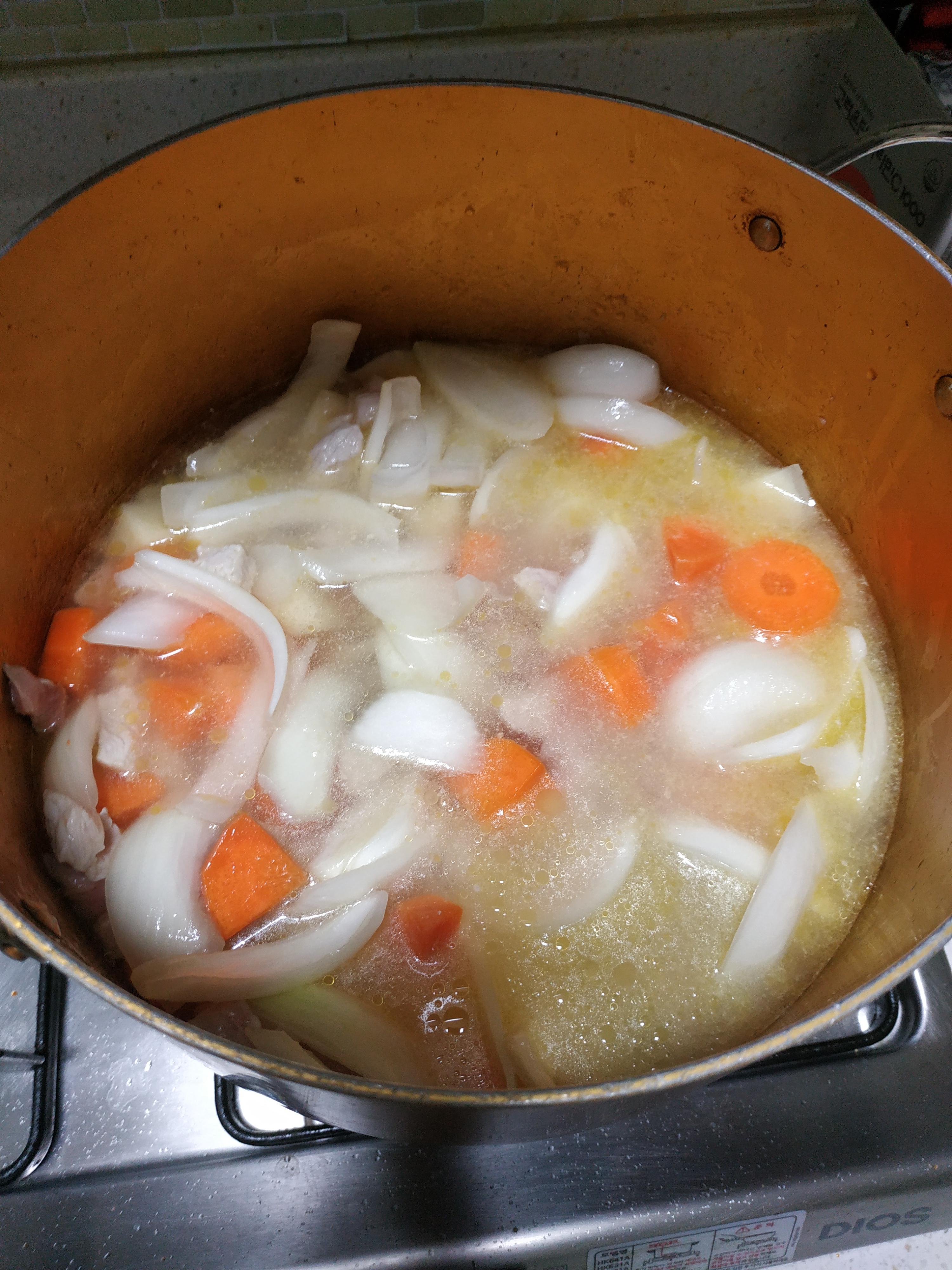 뭐 양파도 투명해지고 고기도 어느정도 익고 감자랑 당근도 어느정도 익어야합니다