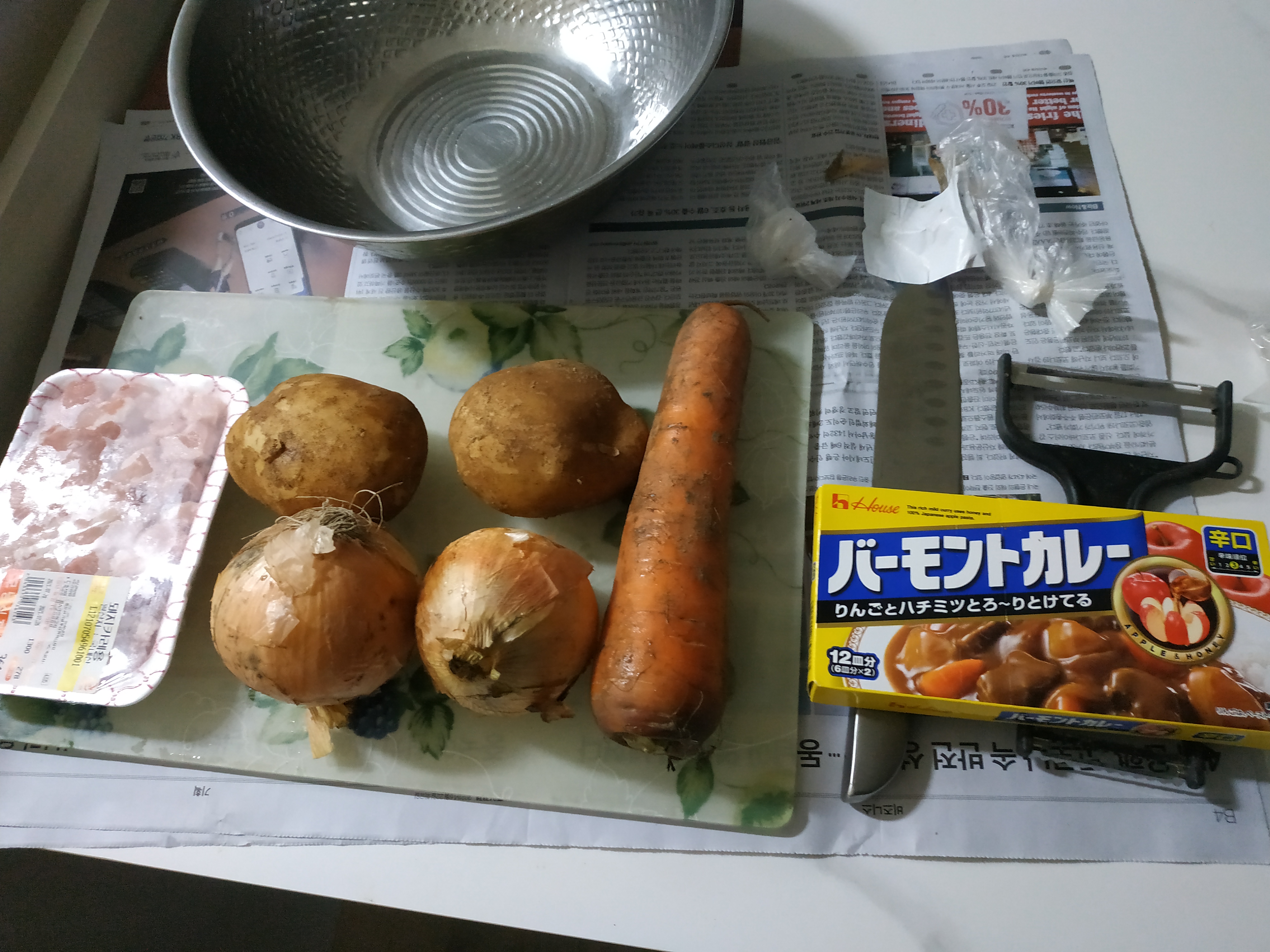 감자가 큰거 두알이어서 그걸 다 넣으면 너무 많을 것 같아서 안넣었습니다 신문지에 껍질들을 싸서 뒷정리를 해줍니다