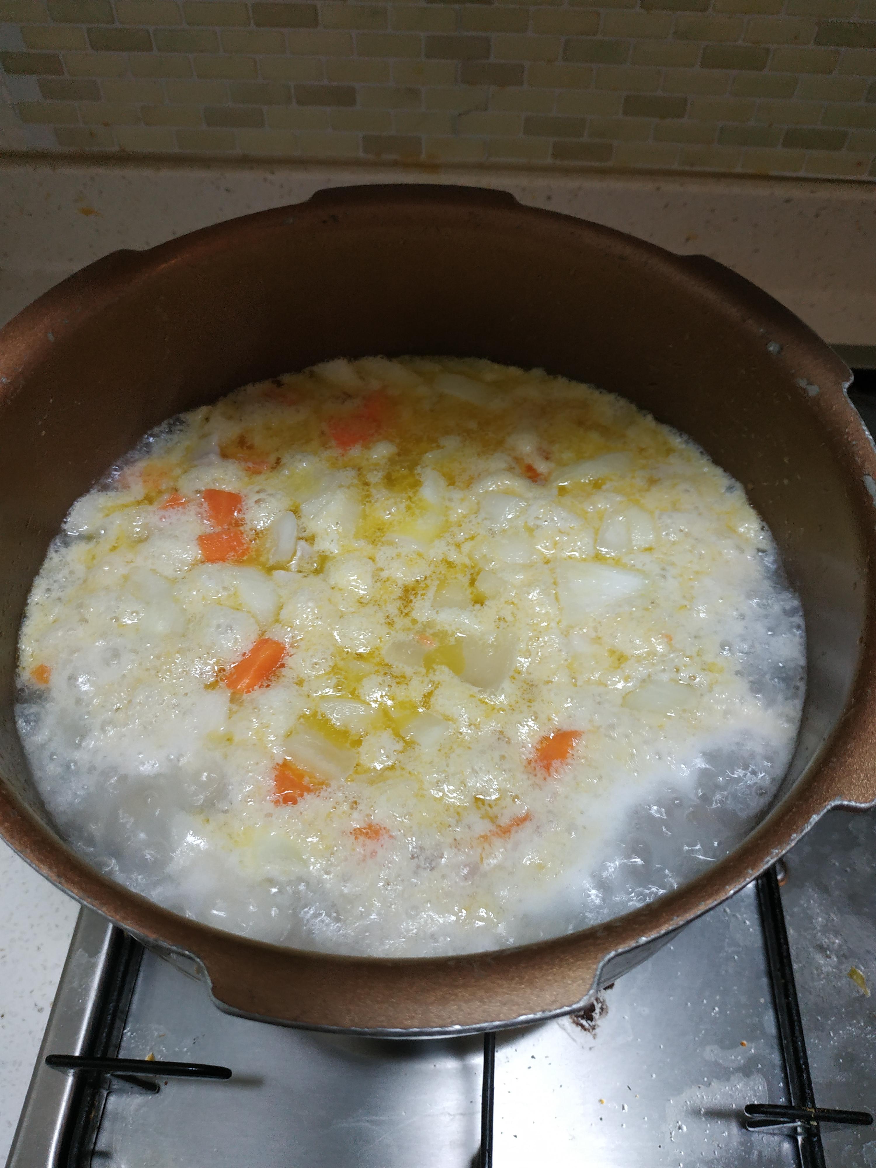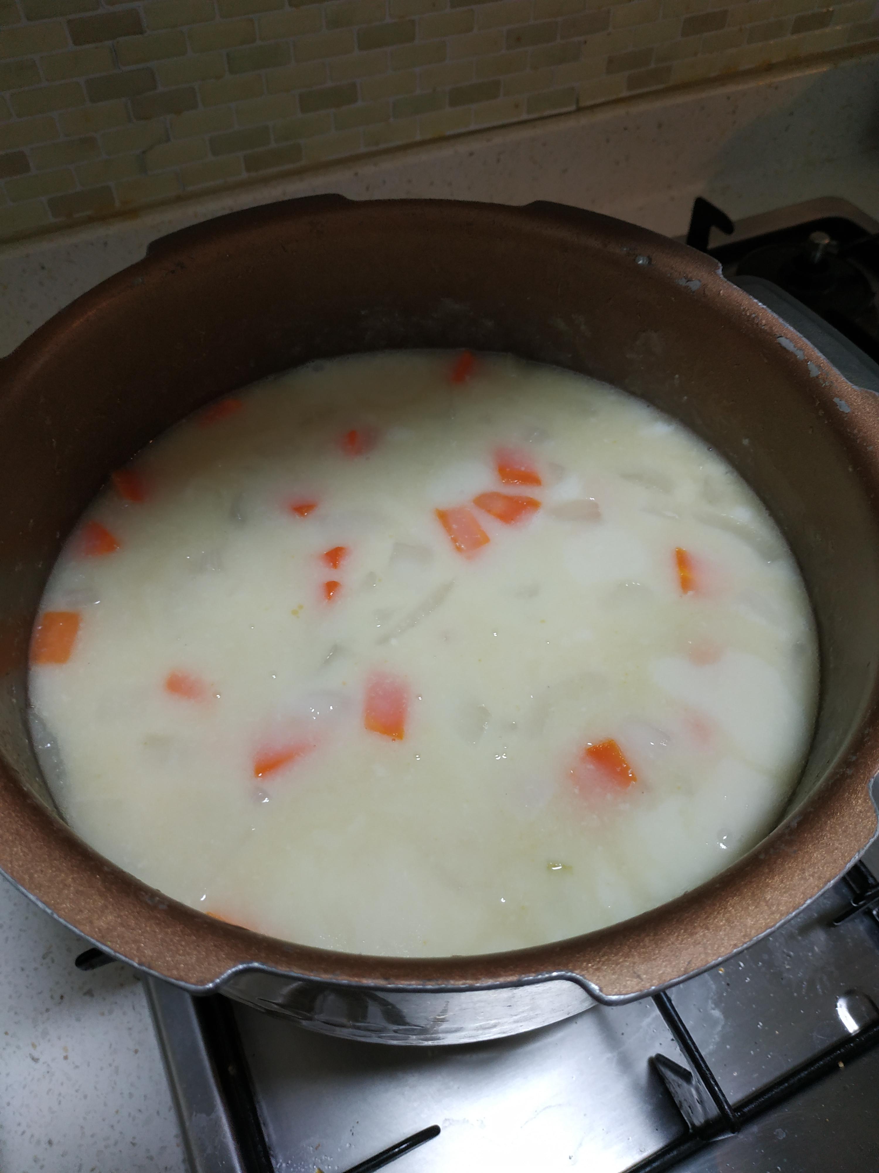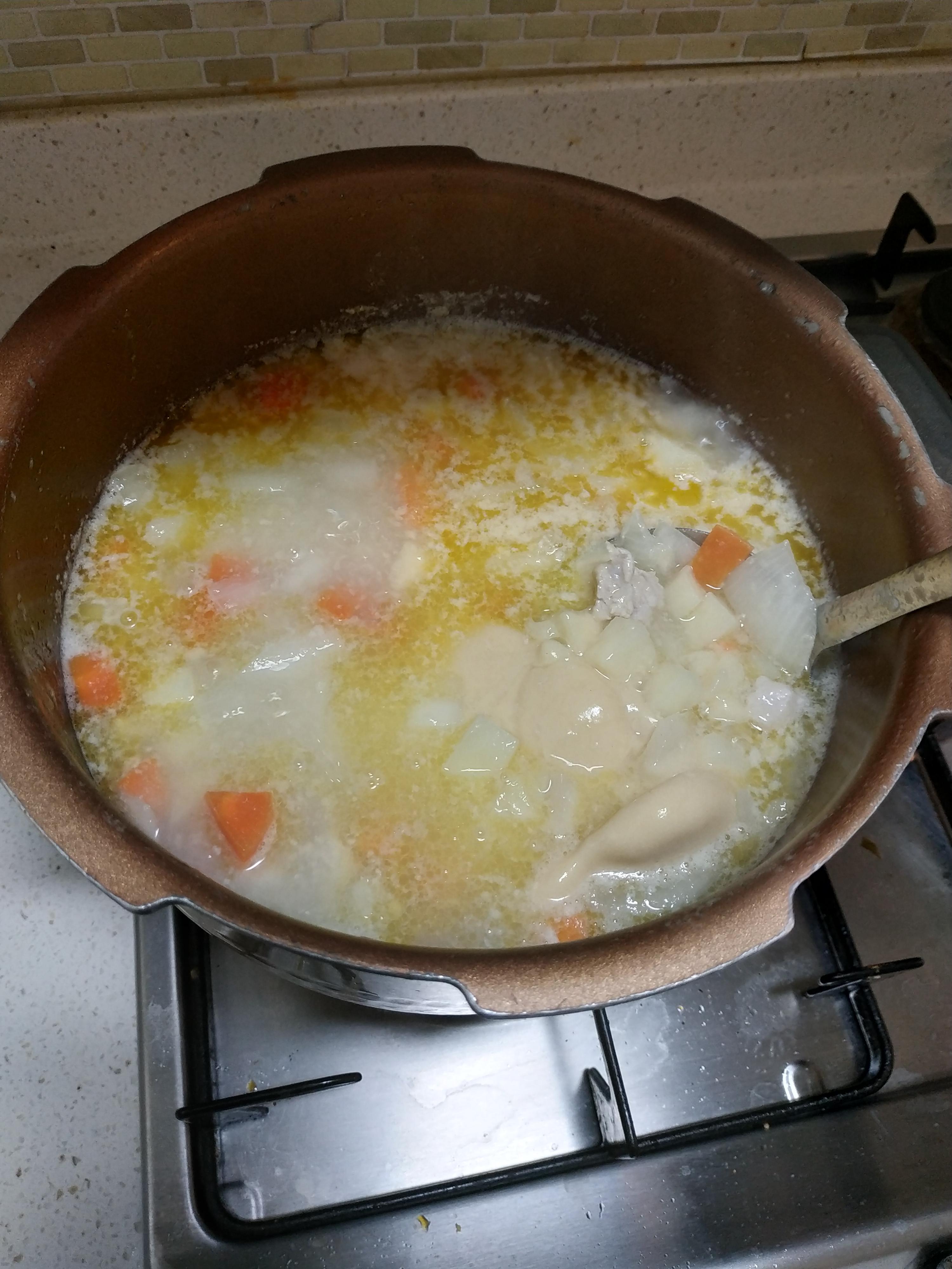 이제야 진짜 크림스튜 같은 모양이 나오네요 냄새도 부드럽고 고소하고 엄청 좋습니다
