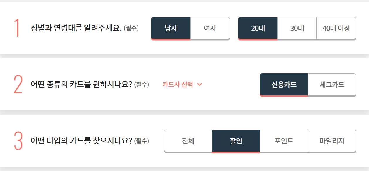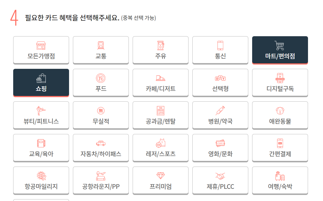 자기 조건에 맞게 골라줍니다 남자-20대-신용카드-할인-마트/편의점-쇼핑