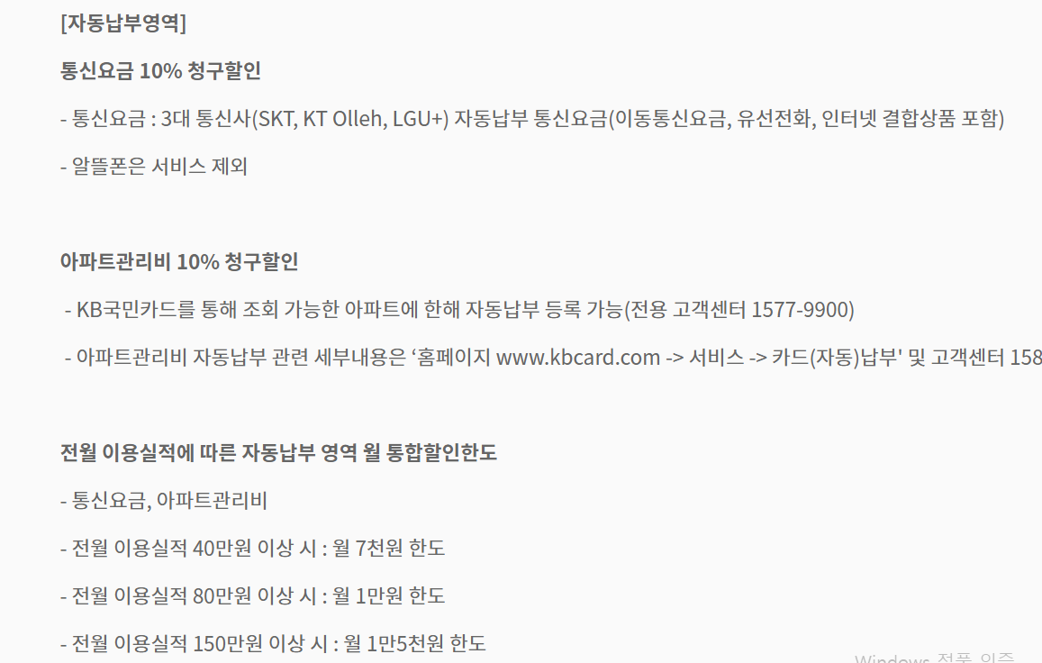 티타늄카드는 통신요금 10프로 할인을 해주고 공과금(관리비,도시가스)를 10프로 할인해주네요