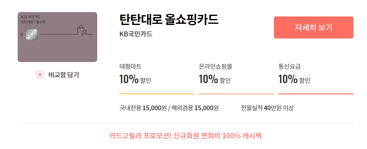 연회비 15000원의 탄탄대로 올쇼핑 카드로 정했습니다!!!라고 말하려다가
