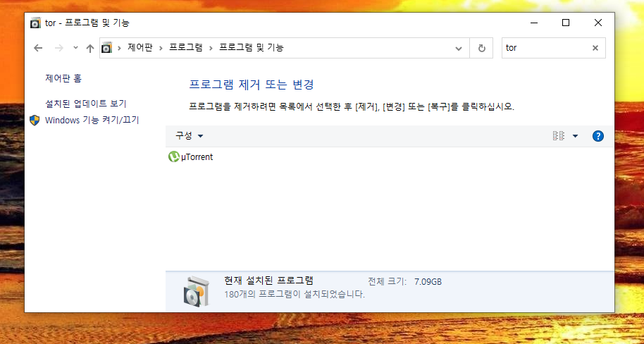 토르는 세상에서 가장 비밀스러운 브라우저답게 제어판에 "Tor"라고 검색해도 절대 뜨지 않는다