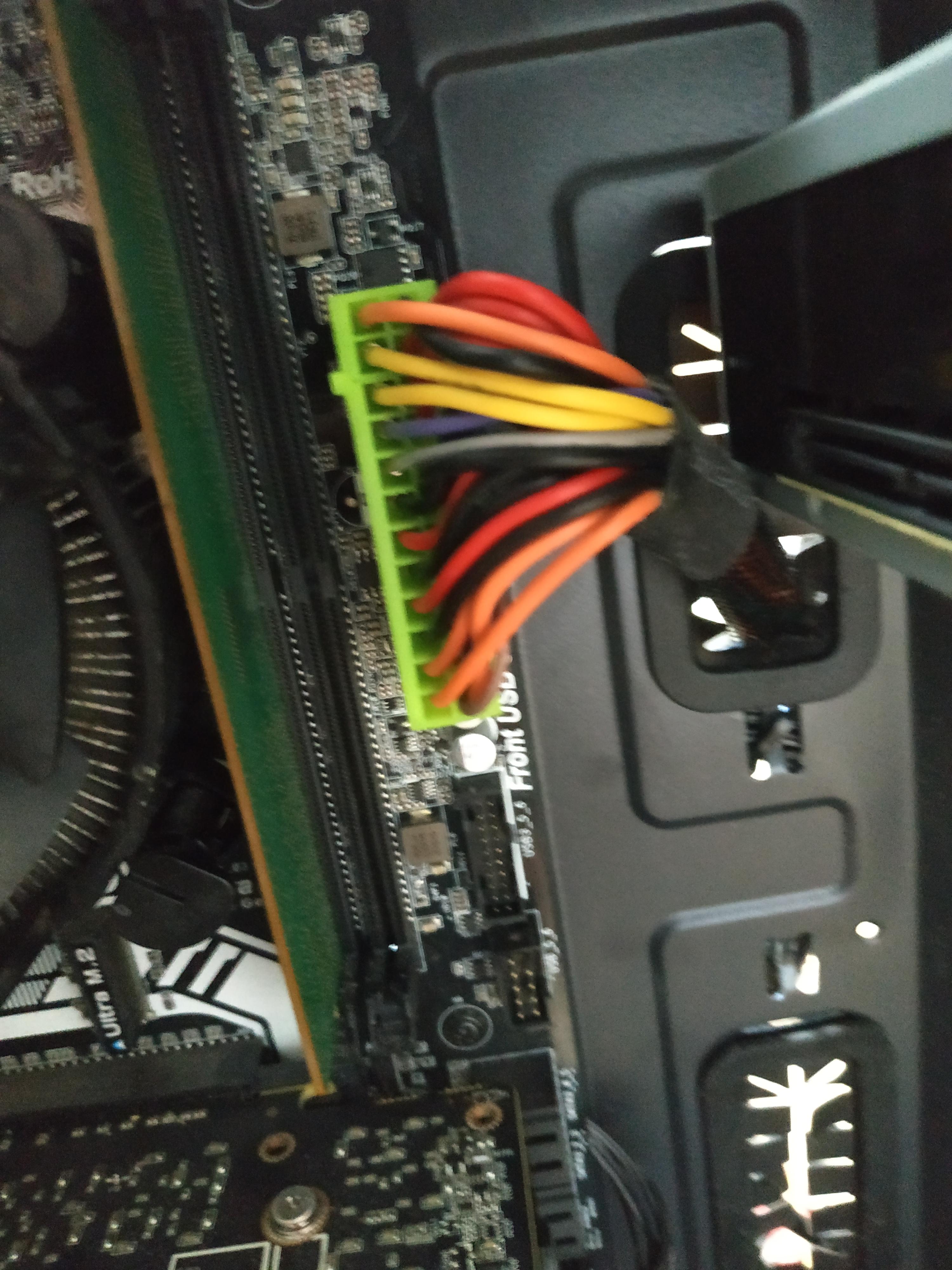 초록색 24핀 커넥터 메인보드에서 빼줍니다 메인보드에 꽂힌 이 녀석을 뽑아야하는데