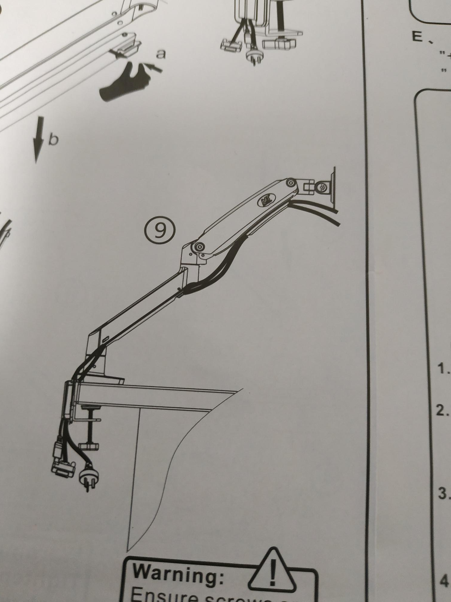 방향 맞게 덮개에 끼워서 모니터암에 나사로 고정합니다(3번)