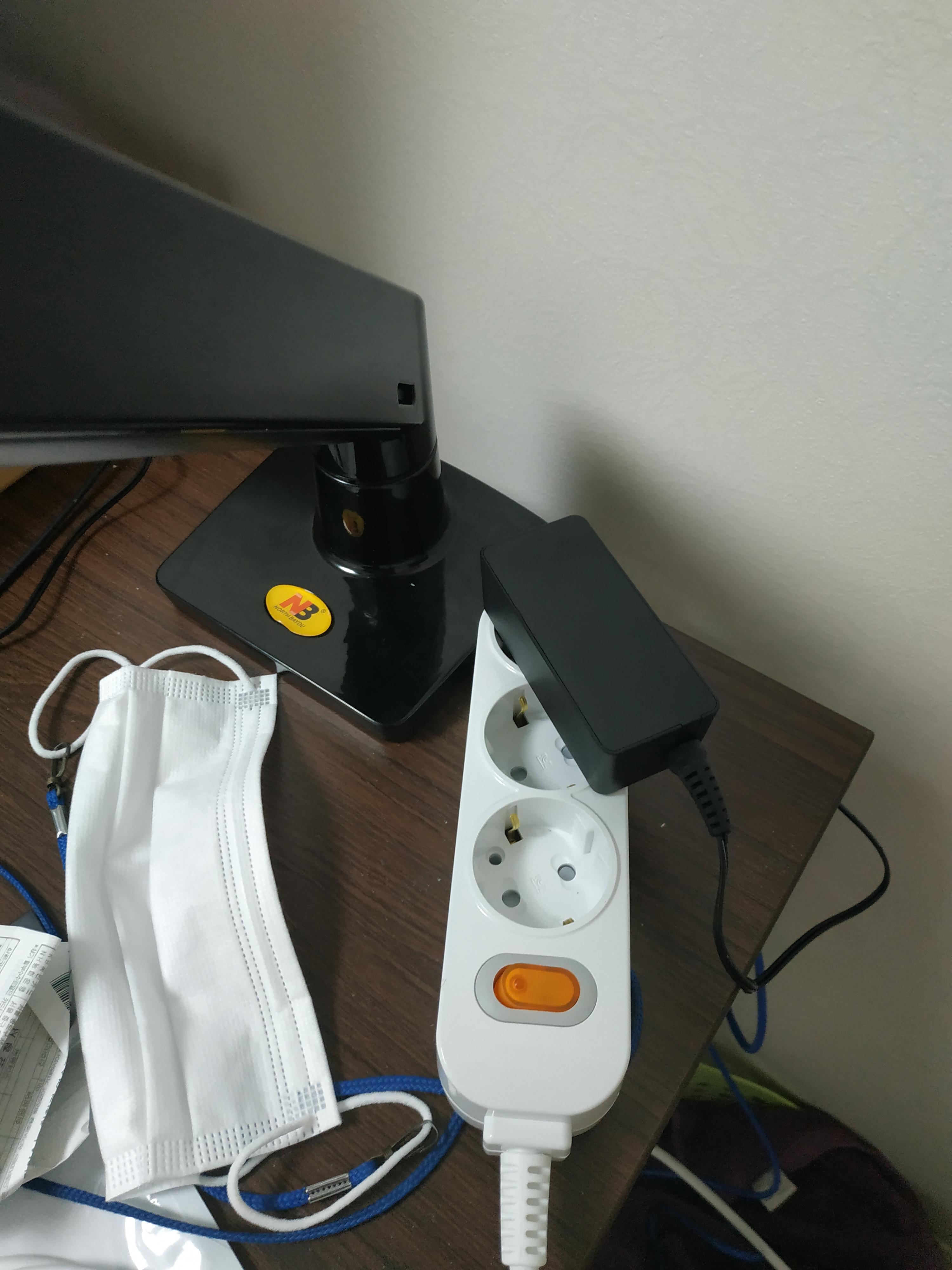멀티탭을 위로 빼서 거기에 전원 어댑터를 끼우면 완성