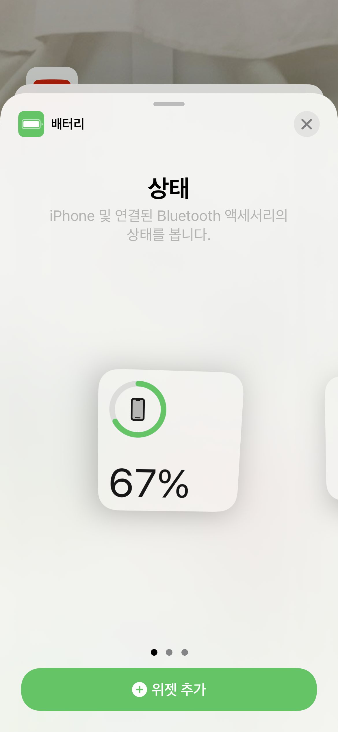 좀 번거롭고 2번 배터리 위젯 추가하는 방법은 좀 지저분하기 때문에