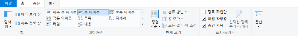 1.아무 폴더나 들어간다->위의 탭에서 '보기'를 클릭한다